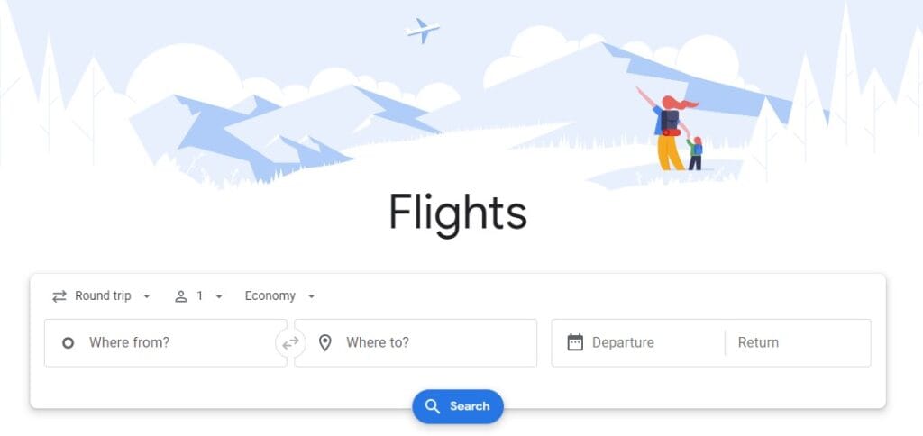 Go to the flights page on Google Flights and you’ll see the screen above.